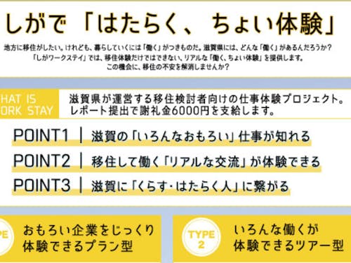 滋賀でリアルに「はたらく、ちょい体験」しませんか?