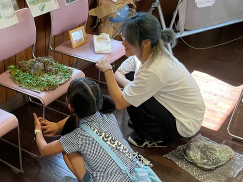主な活動として、近江八幡の文化や歴史、自然などを調べたり体験したりして、美術作品をつくっています。 また、地域の人が参加できる美術のワークショップも開いています。