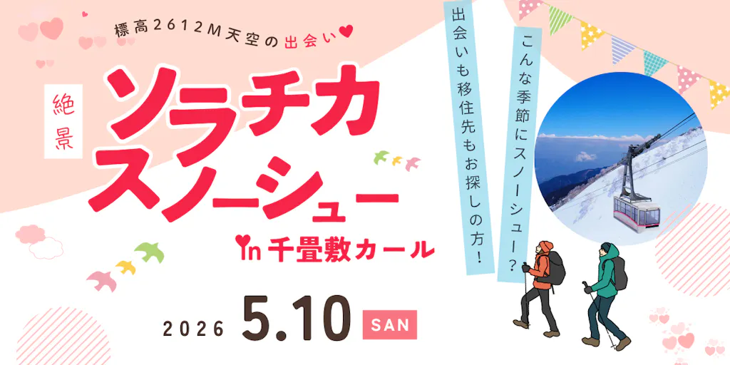 そんな2つの季節を1度に体験できる「絶景ソラチカスノーシュー」は出会いイベントと移住イベントの両方をコンパクトにまとめたイベントです。