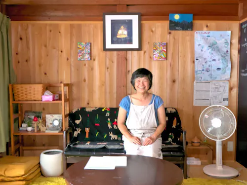 「農家民泊JUGEMU」のホストである寿海さんも、自給自足の田舎暮らしを求めて色川へと移り住んだ移住者の一人。群馬県で生まれ育ち、大阪府出身のご主人と一緒に2013年に移住しました。その翌年、農業をしながら色川の暮らしが体験できる体験型の宿泊施設「農家民泊JUGEMU」をオープン。