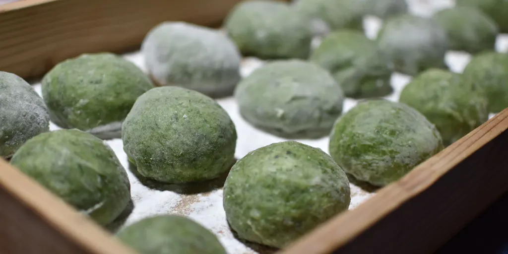 ●よみや団子の材料 よもぎ・・・茹でて500gほど 重曹・・・大さじ1