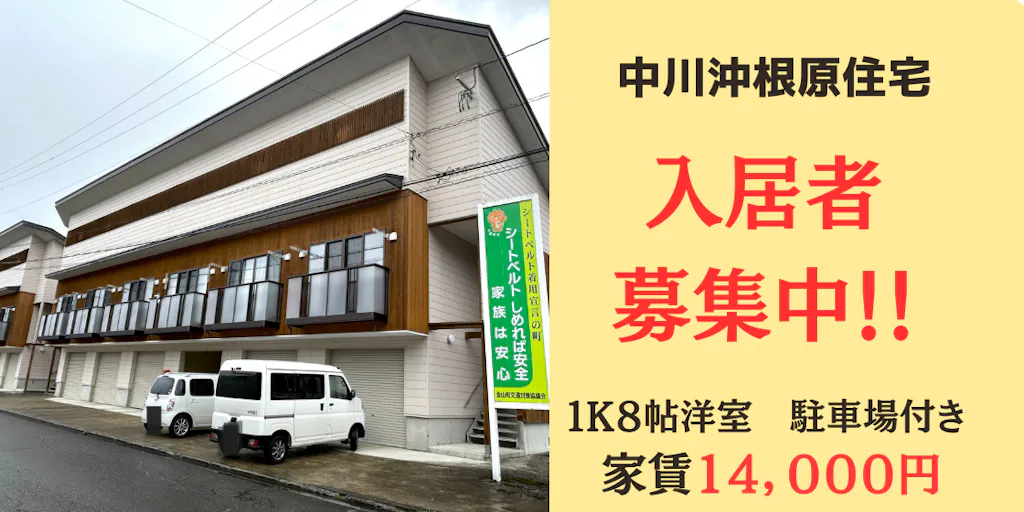 【定住促進住宅】中川沖根原住宅の入居募集が始まりました!1K8帖洋室 家賃14,000円