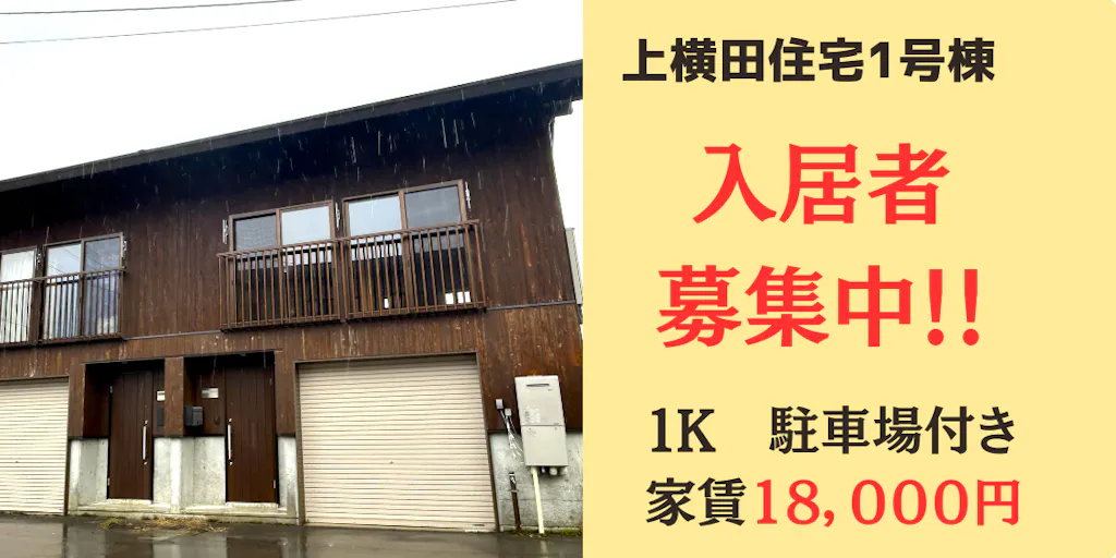 【定住促進住宅】上横田住宅1号棟の入居募集が開始しました!1K洋室 家賃18,000円