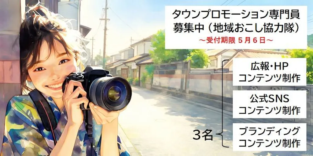 【受付期限:5月6日】地域おこし協力隊(タウンプロモーション専門員)3職種同時募集します!
