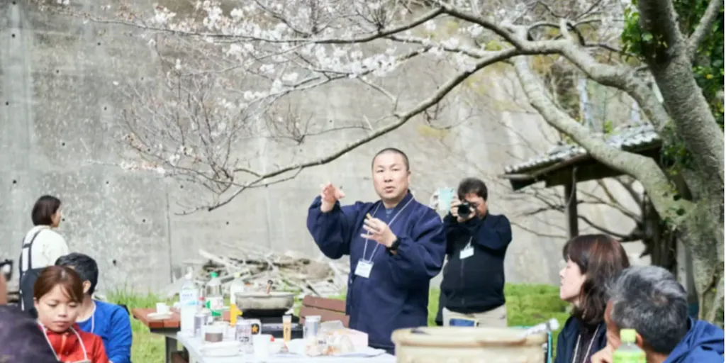 そう伝えることで、お寺は少しずつ、人が自然と集まる“ひらかれた場”へと変わっていきました。 ーーーー こうした実践の延長線上で、本格的に向き合うことになったのが、空き家を活用した民泊事業「波ノ音(なみのね)」です。 勝浦市の空き家率は47.1%と、全国平均の約3倍にも上ります。 妙海寺にも、 「年に数日しか使わない家の管理が大変」 「売るのも貸すのも抵抗がある」 といった相談が多く寄せられていました。 そこで私は、「お寺が管理する形ならどうだろうか」と提案し、空き家を民泊施設として再生したのです。 宿泊者には、お寺体験や地域の人との交流の機会を用意し、滞在を通じて勝浦の暮らしを感じてもらっています。清掃は近隣の主婦の方にお願いし、地域の中に小さな雇用も生まれました。 「波ノ音」は、単なる不動産業ではなく、空き家を“人の流れを生む場”として再生するモデルとなり、他の地域の方・お檀家さんが持つ物件にも広がり始めています。 さらに、こうした空き家再生を、お寺を介して「次へと手渡していく」取り組みとして進めてきたのが「ブッダ不動産」です。 ーーーー ブッダ不動産では、単に物件を紹介するのではなく、家や場所に積み重なってきた時間や記憶、持ち主の想いをいったんお寺が受け止め、次の担い手へとつないでいく。そんな“継承のかたち”を大切にしています。 象徴的な実践が、長らく空き家となっていた「江澤邸」を舞台に開催したミニシンポジウム、「桜を見る会」でした。 明治に建てられ、約130年守り継がれてきた網元の家を前に、行政職員や地域おこし協力隊、建築家、起業家、大学教授、県外からの参加者が桜の木の下に集い、「この家をどう未来につなぐか」「勝浦の街について」を語り合いました。 街歩きや空き家見学ツアーを通じて、実際に勝浦の人や暮らしに触れてもらう。その体験の中から「関わってみたい」という気持ちが生まれ、具体的な行動へとつながっていきました。建築の専門家とともに利活用を検討し、これまでに7件の再生・整理が実現しています。→https://note.com/buddha_fudousan/n/nb312c9108b51