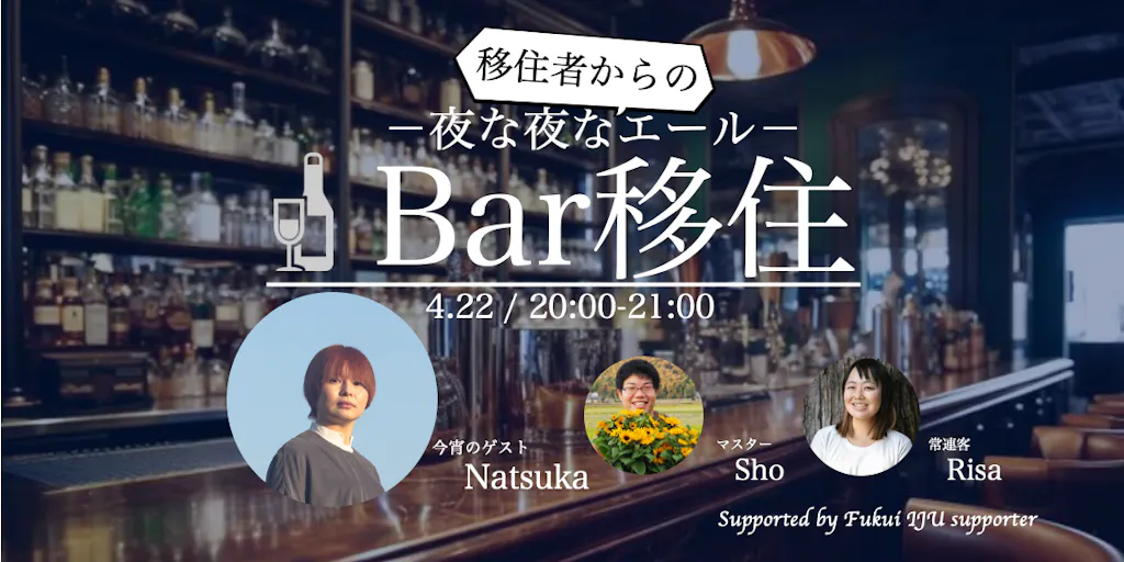 移住のあれこれについて、テーマだけを決めて、ゆるりと話す夜。 それが【Bar移住〜夜な夜な移住者からのエール〜】
