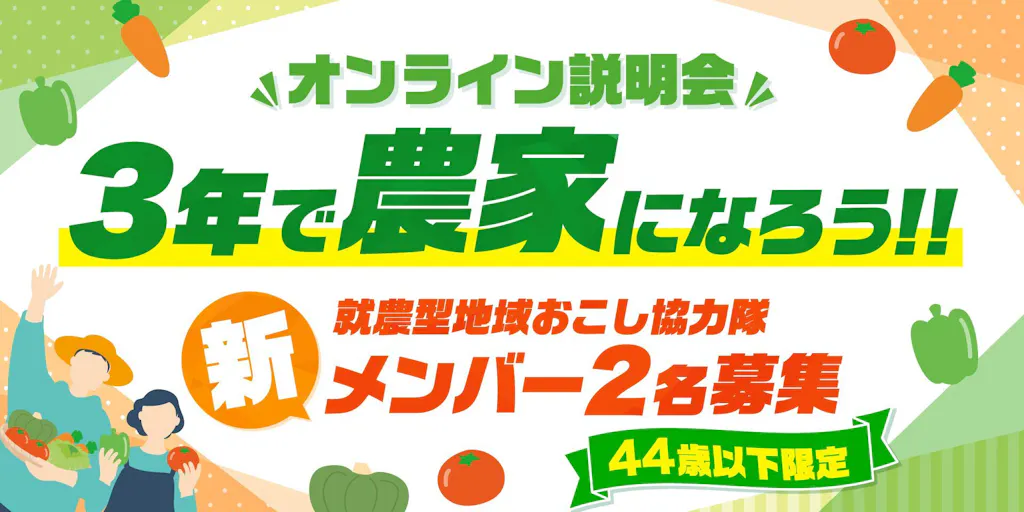 ■ 内容 ① イベントの概要説明 ② 田村市の紹介 ③ ゲスト紹介 ④ ゲストトーク ・ロードマップ:イベント参加から協力隊着任、就農準備までの流れ ・準備項目:就農計画、農地、住まいをどう具体化していくか ・先輩のリアル:未経験者/経験者それぞれの視点から見る就農までの実感 ・比較ポイント:他自治体との違いとして、どこに田村市の特徴があるのか ⑤ 質疑応答 ⑥ 今後のイベント紹介・体験機会の案内