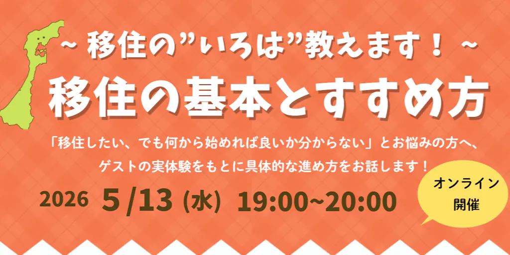 【5/13(水)オンライン開催】~移住の”いろは”教えます!~ 移住の基本とすすめ方