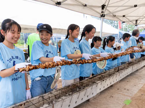 福島県政150周年を記念し、過去の記録を大きく上回る 150羽(約90メートル)の丸焼きを実施。史上最長のスケールで挑みます。