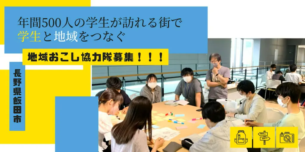 ★こんな方におすすめです! ・大学生、若者の学びをサポートしたい方 ・同世代の仲間との取り組みを通して、刺激を受け、成長したい方 ・地域の資源を知りたい方、地域の人とつながりたい方 ・場作り、ネットワーク作りが得意な方