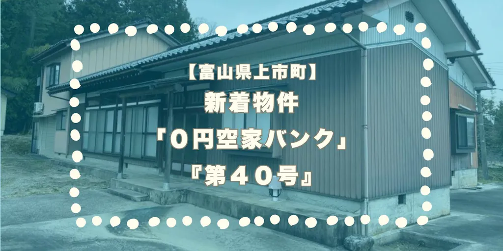 【富山県上市町】「0円空家バンク」新着情報!『第40号(極楽寺)』