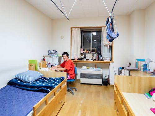 男女の居住棟は分かれ、夜間には教員と補助舎監(生活指導補助員)が待機しており、親元を離れても安心して生活できる環境が整っています。教育寮として学習を大切にしており、毎日学習時間を設けるほか、出張町営塾にも参加できます。