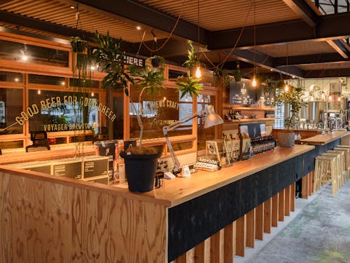 約500㎡の広い鉄工所跡をリノベーションした店舗兼醸造所には、その場で出来立ての生ビールを味わうことができるカウンターがあり、持ち帰り用のビールやオリジナルグッズが買えるショップも併設されています。