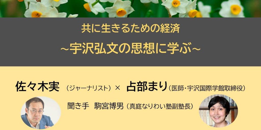 <第5回配信のご案内> 日 時:1月16日(土)10:00~11:30 テーマ:「共に生きるための経済~宇沢弘文の思想に学ぶ~」 講 師:佐々木実(ジャーナリスト)×占部まり(医師・宇沢国際学館取締役)