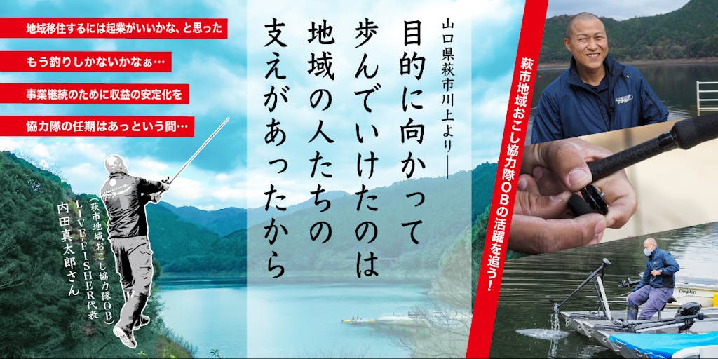 2025/05/04<<こんにちは、萩市ローカルエディターの上田です!今回取材をお願いしたのは、萩市地域おこし協力隊OBで、現在LIVE-FISHER株式会社の代表取締役であられる内田真太郎さん。彼は萩市地域おこし協力隊第2期生で、卒業後の現在は阿武川ダム湖(阿武湖)でフィッシング用ボートの貸し出しや周辺環境の維持活動などを行いつつ、自らオリジナルのフィッシングロッドを製作し販売しています。今回はそんな内田さんに、OBでなければ語れない地域おこし協力隊のことや移住・起業のことを聞いてきました!! この記事は、萩市移住をお考えの方や萩市地域おこし協力隊に関心のある方に読んでいただければ嬉しいです>> 上田)まずは協力隊に入る前の内田さんについて、教えてください。