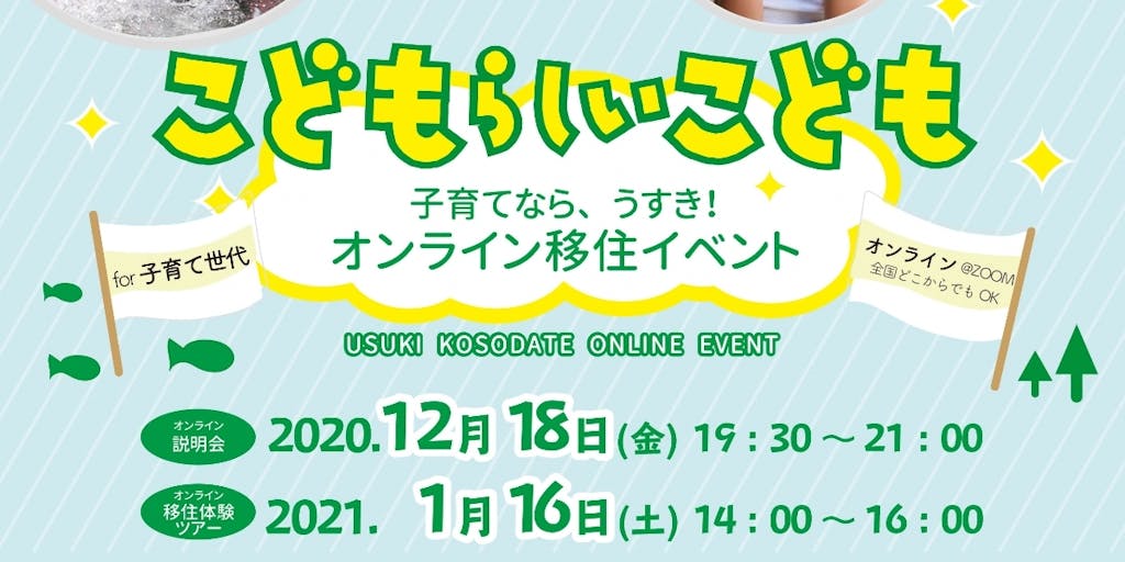 詳細、お申込みはこちらから 〇子育てなら、うすき! オンライン移住イベント https://usuki-job.com/archives/5749