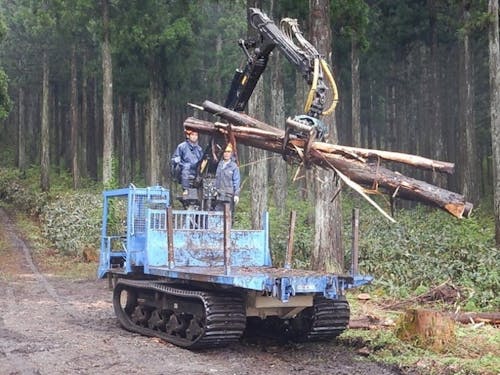 現在、戦後に植林された森林が十分に育ち、木材として利用できる段階になりました。 先人の残してくれた森林をしっかり活用し、次の世代へ繋ぐ新たな森林を作っていくために、今、森林で働く担い手を必要としています。
