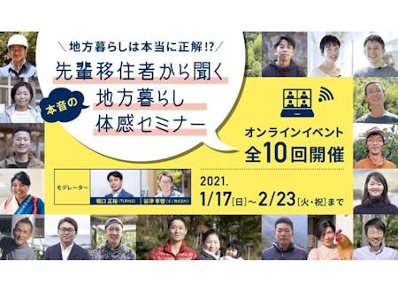 2021/02/06雑誌『TURNS』と高知県がコラボして、先輩移住者が地方暮らしの魅力や本音をお伝えする全10回のセミナー & 交流会を開催します。 毎回テーマに沿った先輩移住者にご出演いただき、地方の暮らしや働き方まで、ざっくばらんに本音を語り合います。 ゲストの先輩移住者の本音を直接聞ける「質問タイム」もあります!