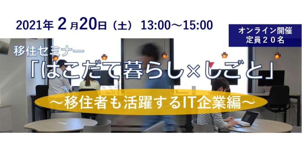 2021/02/19移住セミナー「はこだて暮らし×しごと ~移住者も活躍するIT企業編~」を開催します。 参加する企業は,函館から「アタラシイ」を創り出す勢いのあるIT企業4社。 それぞれ移住者が活躍しています。