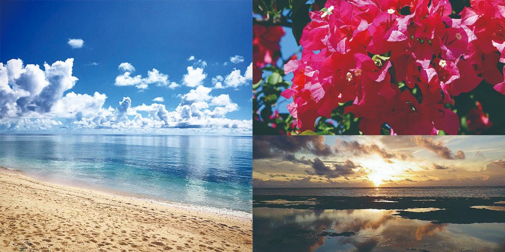 沖縄県で唯一、火山活動で生まれた島の西側ではダイナミックな白亜の絶壁や鍾乳洞。東側では真っ白な砂浜が約1キロも続く南国らしいビーチ、と異なった表情を楽しむことができます。
