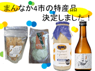 まんなか4市の特産品を事前にお送りしますので、当日はそれをご賞味いただきながらご参加ください!