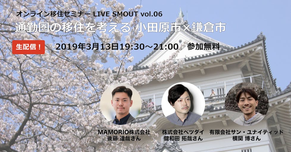 【無料オンライン座談会】3/13(水)19時30分〜「通勤圏の移住を考える 小田原市×鎌倉市」