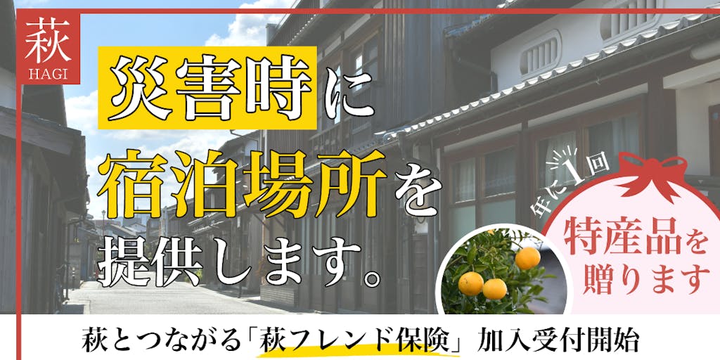 もしものときは、萩市に避難しませんか?被災時に宿泊場所を提供します! ~萩とつながる「萩フレンド保険」加入者募集中~