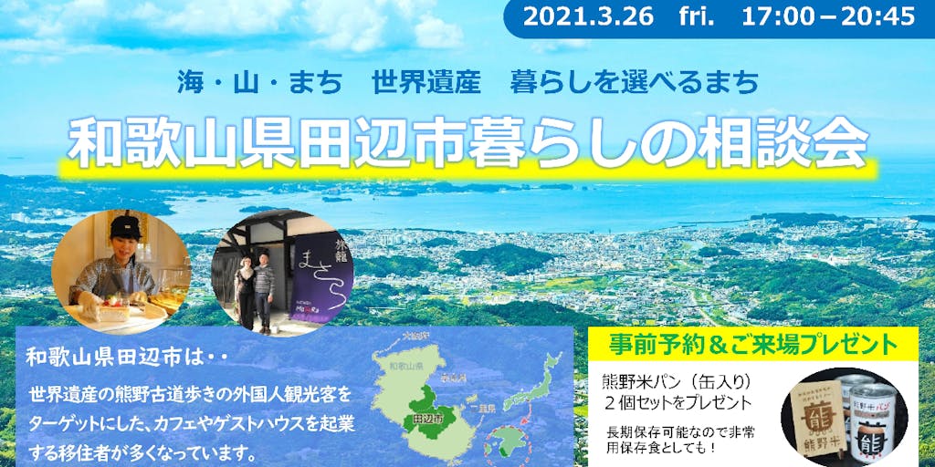 地方で夢を実現したい方、お待ちしています!「和歌山県田辺市暮らしの相談会@有楽町」
