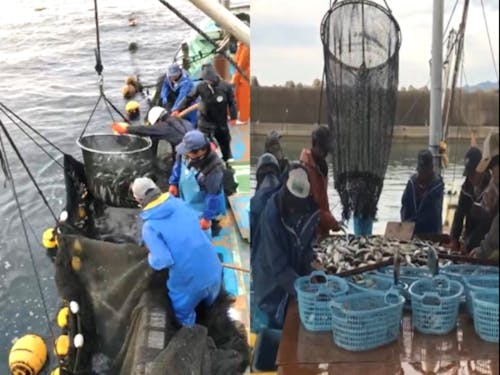 定置網漁は文字通り、海中の定まった場所に網を設置し回遊する魚群を誘い込むことで漁獲します。持続的な漁業が可能な、環境にやさしい漁法と言われています。 そして水揚げした魚の選別作業があります。 いろいろな魚種が捕れるのでたくさんのお魚に出会えますよ☆ また、魚を捕るだけではなく網を補修したりする作業もあります。