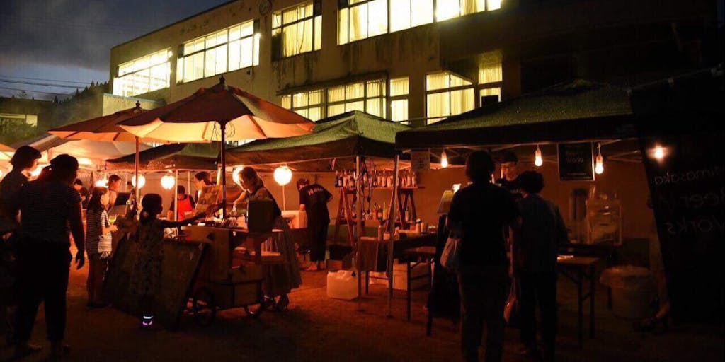 場所も選ばないので、廃校になった小学校や露天風呂の前などどこでも開店。