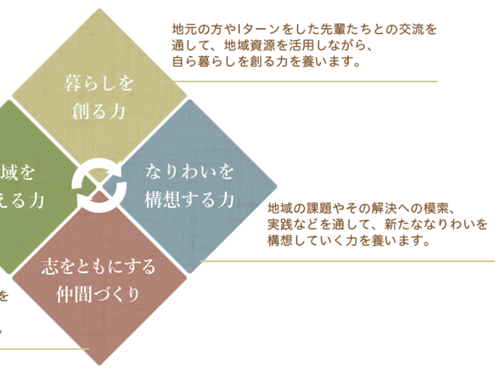 これからの働き方、生き方を真剣に考えたい 半農半Xな暮らしがしたい 農山村にIターン、Uターンしたい 地域資源を生かしたスモールビジネスに関心がある 農山村と都市をつなぐシゴトがしたい 一緒に行動できる仲間をみつけたい