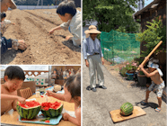 じぃじの畑はたくさんの野菜や果物がとれるんだよ。 甘くて、ピチピチして、固くて、大きくて、苦くて すっぱくて、やわらかくて、シャキシャキで どれも全部おいしいよ。