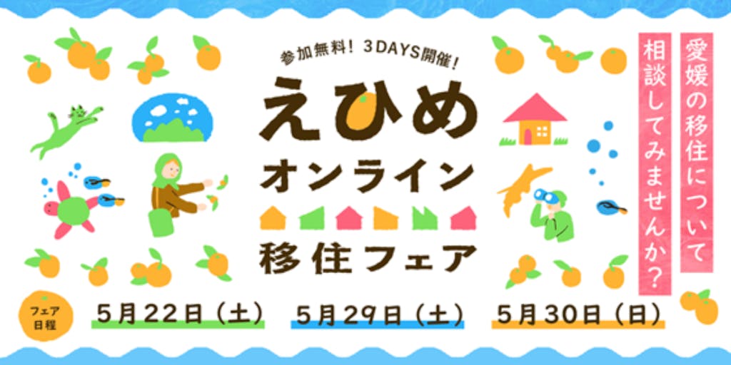 【5/22(土)】えひめの移住について相談してみませんか?えひめオンライン移住フェアを開催します!【5/29(土)・30(日)】