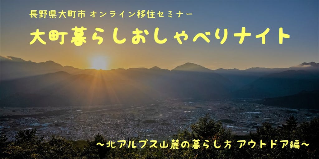 ・スケジュール: ◯大町市ってこんなところ 17:00~ 大町市の移住担当者が市の魅力や支援制度などを紹介します。