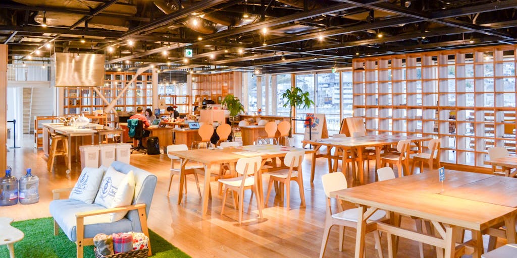 個人会員利用はなんと年会費1,000円、ドロップイン利用は一日200円とかなりリーズナブルな設定! もちろんWi-Fi利用が可能です。芝生やソファーもあり、リラックスして作業する事もできます。