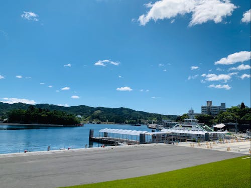 内湾の景色を眺めることができる気持ちのいい立地と、近隣にはカフェや飲食店なども多く建ち並ぶエリア。海風を感じながら休憩することもできます。