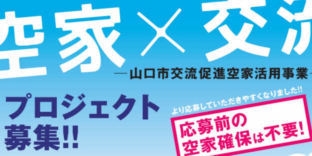 そして、今年度、さらに事業の内容をアップデートして「山口市交流促進空家活用事業」を実施することとしました。 地域を盛り上げるには、とにかく人が来なければ始まりません。「山口市交流促進空家活用事業」では、山口市内の空き家を使って、たくさんの人を呼び込むアイデアを募集しています。 あなたのアイデアで、山口市のこれからを創ってみませんか?