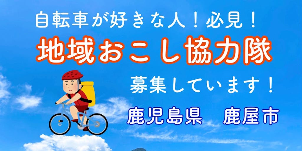・三大都市圏、都市圏在住の方 ・20代~40代の方(性別は問わない) ・自転車が好きな方 ・普通自動車運転免許証を取得している方 ・基本的なパソコンの操作ができる方 ・地域に溶け込み、地域住民とともに地域活動に取り組める方 ・鹿屋市に住民票を異動できる方で、活動終了後、起業・就業し定住する意欲のある方 ・SNS等で積極的に情報発信してくれる方 ・プロサイクリングチーム(CIEL BLEU KANOYA)や鹿屋体育大学自転車競技部のサポートをしてくれる方 ・地方公務員法第16条に規定する欠格条件に該当しない方