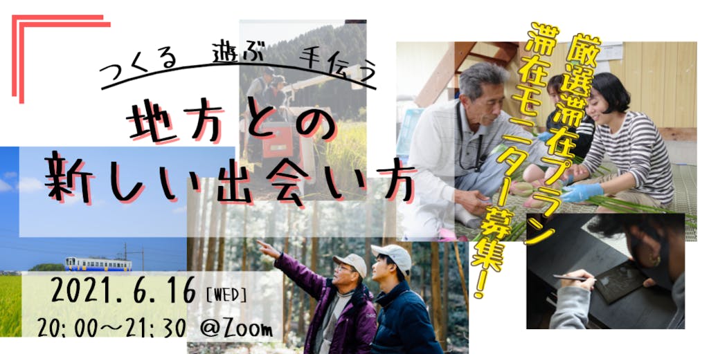 「つくる 遊ぶ 手伝う 地方との新しい出会い方」【6/16 20時~@オンライン】地方で暮らす5人による地域と出会う滞在プランをご紹介!
