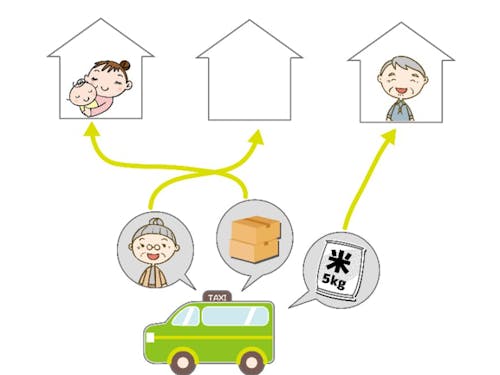 日本初のハイヤーによる貨客混載を実証し、事業化を目指します。 具体的な事業内容は、町内の商店等から商品を高齢者等へ宅配、あわせて大手宅配事業者と連携し宅配を行います。更に地域交通を継続・維持するために、ハイヤー会社のドライバー業務も担います。 発想力と運転のスキルを活かして、事業化にむけてのスキームを確立していくことがミッションです。 令和4年度にも同事業を担う地域おこし協力隊を追加募集し、一緒に事業を進めていく予定です。