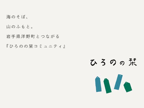 わたしたちは2021年春からローカルメディア「ひろのの栞」で洋野町のヒト・コトを発信しています。このたび、これからの洋野町を一緒に考え、つくる仲間を増やしたいという想いから、ローカルメディアを発展させた「ひろのの栞コミュニティ(https://community.camp-fire.jp/projects/view/425969)」を立ち上げました。 洋野町出身の人、何かしらの縁がある人、つながりがあるわけじゃないけどどんな町かのぞいてみたい…などなどちょっとでも興味がある方はみなさん大歓迎です。いまいる場所で洋野町とつながるコミュニティを、わたしたちと一緒につくっていきませんか。 オンラインコミュニティは、月額¥500ですが、コミュニティメンバーになっていただいた方は、今回のイベント(¥500)が無料になるほか、今後もメンバー限定特典を提供していく予定です。