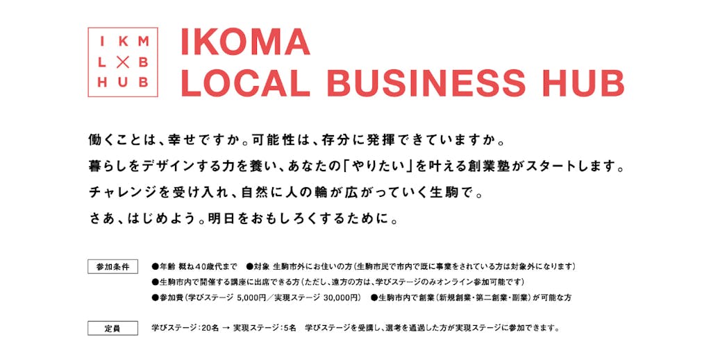 ■市外在住者向け創業塾「IKOMA LOCAL BUSINESS HUB」の詳細説明ページ https://www.city.ikoma.lg.jp/0000026628.html