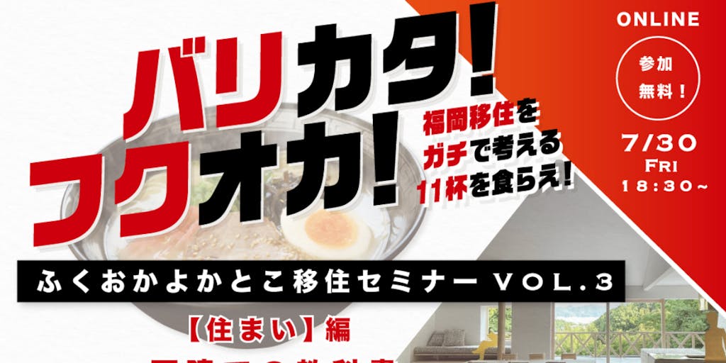 【7/30 18:30~20:00】第4回ふくおかよかとこ移住オンラインセミナー「戸建ての教科書」を開催します!!