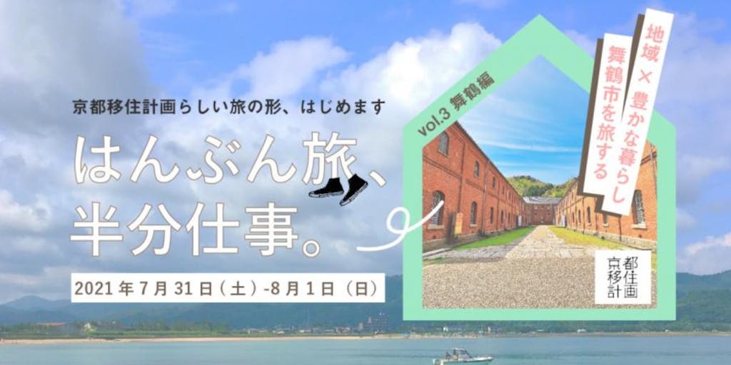 2021/07/26「はんぶん旅、半分仕事。」は、京都移住計画のメンバーとともに京都ローカルを訪ねる、旅と仕事のあいだのような企画で、今回はCoworkation Village MAIZURUを起点に実施させていただくことになりました。