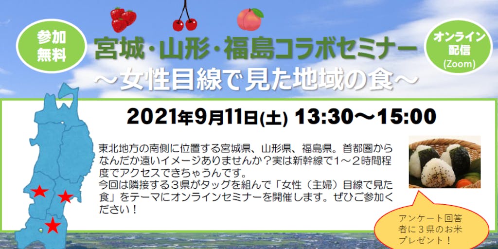 【9/11宮城県・山形県・福島県コラボセミナー】女性目線で見た地域の食