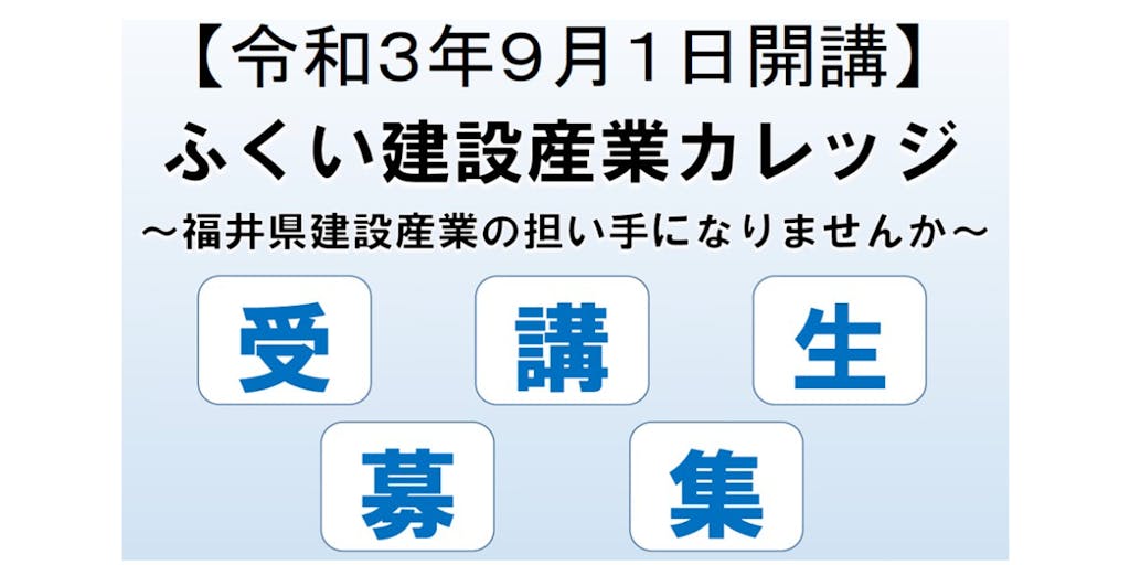 詳しい内容はこちらをチェック!! https://www.pref.fukui.lg.jp/doc/kanri/kensetsu-college.html 興味あるを押していただくと次回以降の案内もお知らせします。