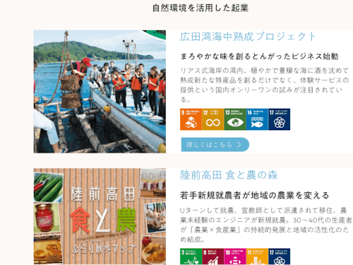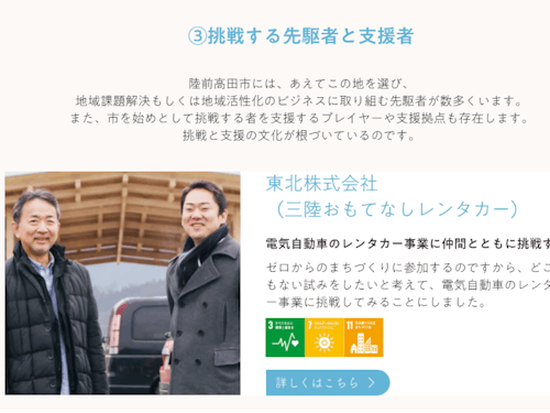 陸前高田市ではSDGsの達成に向けて2020年9月、「陸前高田市SDGs起業家支援プログラム」を始動いたします。 昨年度から社会課題に取り組む起業家に対してウェビナーや個別相談、現場視察等を開催し、市内外の起業家と市内事業者とのマッチングなどを進めながら、陸前高田での事業形成から実施に向けた支援を行っています。