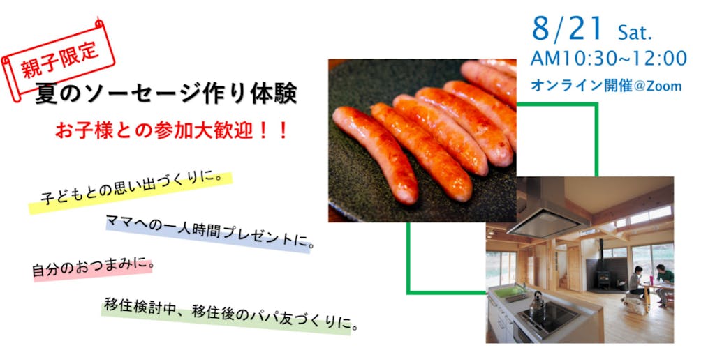 ・夏休み、自宅でできる楽しみが欲しい! ・伊那の人と話してみたい! ・子どもと一緒の思い出をつくりたい ・地方で起業に興味がある! ・手作りソーセージを食べたい!