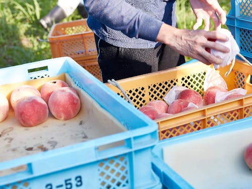 時期によりますが、6月中旬から8月中旬は、桃の収穫をメインに体験していただきます。早朝から農園で収穫作業をおこない、収穫した後は桃を選別する作業も行います。