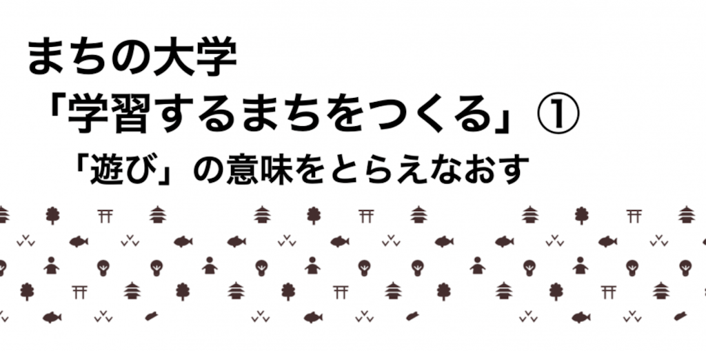 第1回のテーマは「遊び」です。 私たちは、本当に今、遊ぶことができているのだろうか? かつて遊びとは何だったのか。私たちが忘れてしまった遊びから学び、現代の遊びを進化させていくことに、「学習するまち」をつくる大きなヒントが隠されているのではないか。 遊びの本質をとらえながら、日本の歴史や文化、今の時代における遊びの在り様などを幅広く、そして深く語ります。そのうえで、これからのまちに求められる「遊び場」を構想していきます。 そして、皆さん自身の「遊びのとらえ直し」をどうやって進めるのか、みんなで考える場にしていきたいと思っています!
